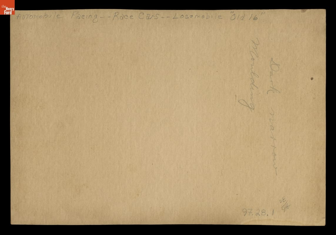 Locomobile Old 16 Race Car on Racetrack with Driver and Mechanic, 1906-1908