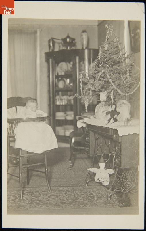 Ethel Grace Fitzgibbons in High Chair near Christmas Tree and Toys, 1911