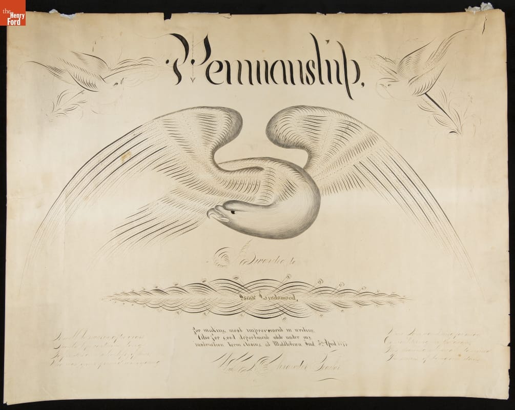Penmanship Award to Isaac Lindamood from His Teacher William C. Shrawder, Middletown Indiana, April 5, 1877