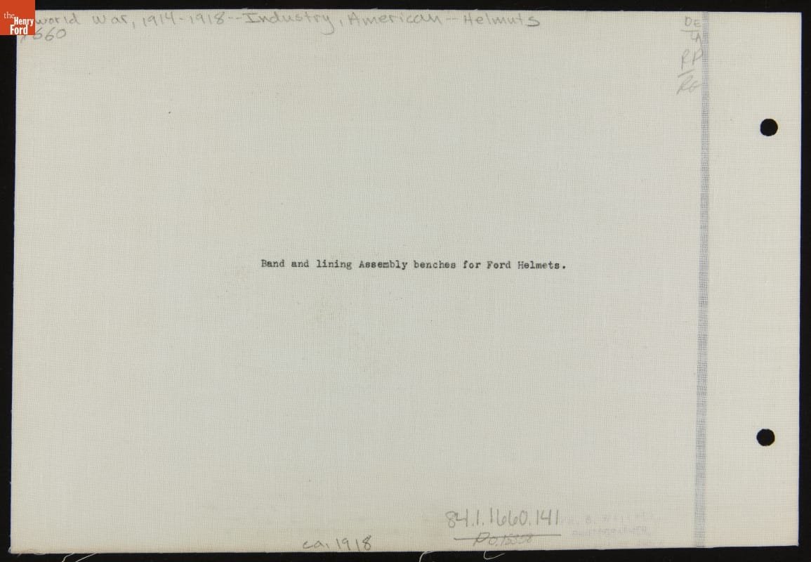 Band and Lining Assembly Benches for Army Helmets, Ford Motor Company Philadelphia Plant, 1917-1918