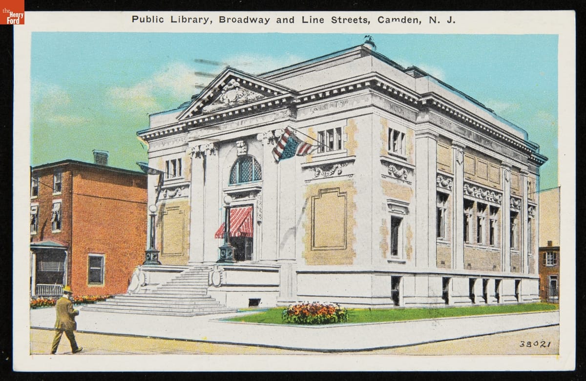 Andrew Carnegie (1835-1919) amassed an immense fortune from railroads, oil, and steel. He devoted his later years to philanthropy. Between 1886 and 1919, Carnegie donated more than $40 million to build 1,679 new libraries in communities of all sizes across America. This Classical Revival-style library building, funded by a Carnegie grant, opened in 1905 in Camden, New Jersey.