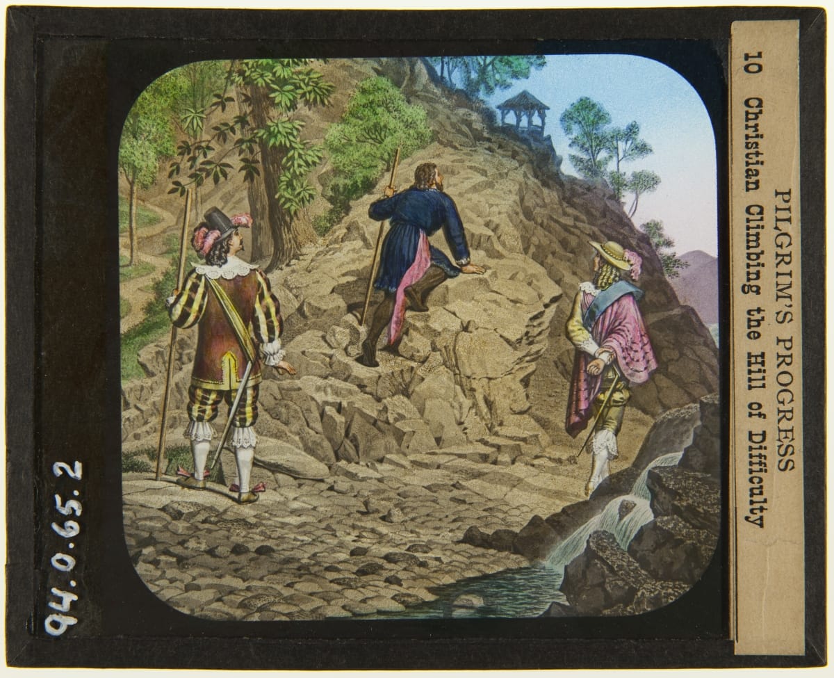 Lantern Slide,"Pilgrim's Progress, Christian Climbing the Hill of Difficulty," 1896-1897