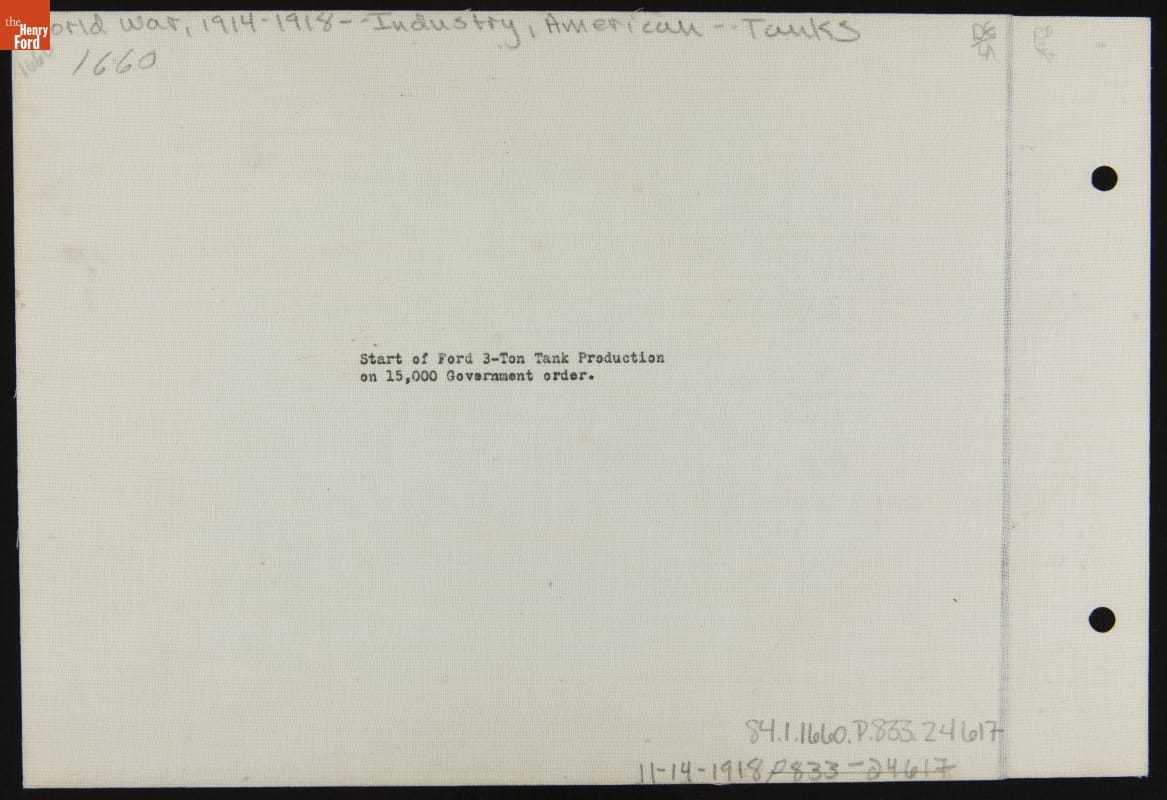 Progress of Ford 3-Ton Tank Production, November 14, 1918