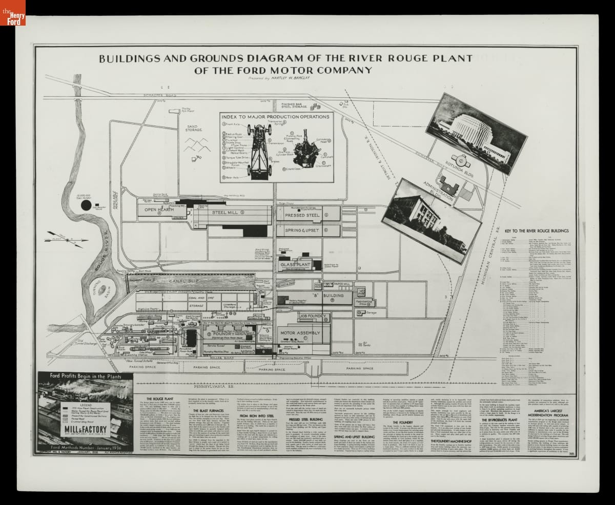 Buildings and Grounds Diagram of the River Rouge Plant of the Ford Motor Company, Mill & Factory, 1936