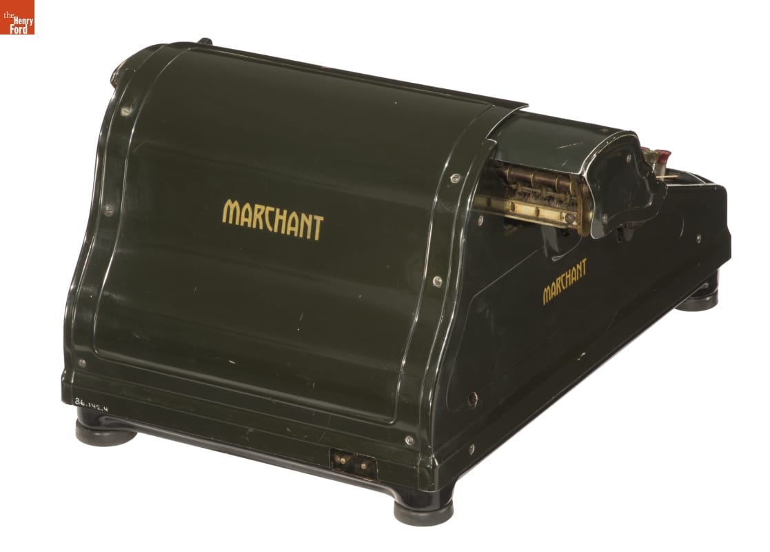 Mechanical adding machines were indispensable--and almost indestructible--office equipment used before the computer era. Marchant was the first American firm to specialize in calculators, which could perform at least the basic mathematical functions of addition, subtraction, multiplication and division; an improvement over two-function adding machines. Founded in 1911, Marchant was absorbed by Smith-Corona Co. in 1958.