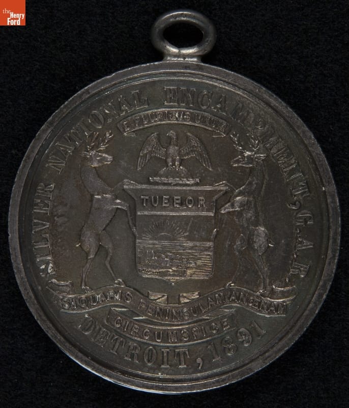 SILVER NATIONAL ENCAMPMENT, G.A.R. / E PLURIBUS UNUM / TUEBOR / SI QUAERIS PENINSULAM AMOENAM / CIRCUMSPICE / DETROIT, 1891