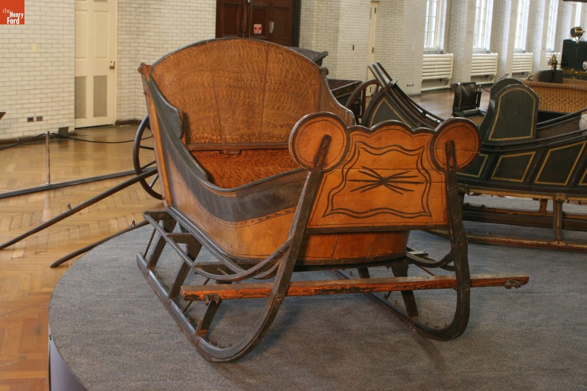 Cutters, two-passenger sleighs, provided reliable wintertime transportation in the pre-railroad northern United States. This particular style was developed in Portland, Maine, in the 1830s and is sometimes referred to as a "Portland cutter." Given the poor condition of early American roads, travel could be easier in the cold months when ice and snow smoothed and hardened otherwise muddy routes.