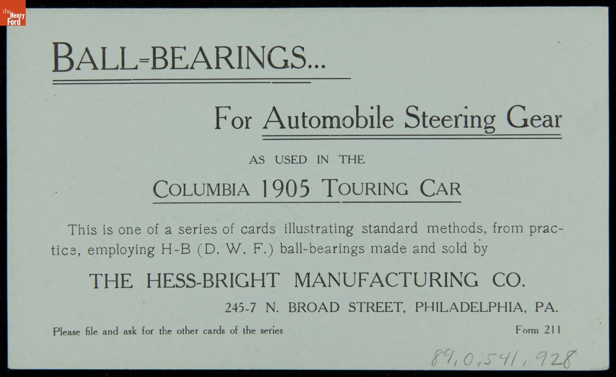 Trade Card, Steering Post Worm Gear, Hess-Bright Manufacturing Co., circa 1905