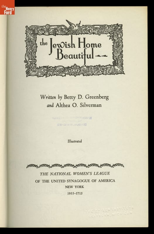 The National Women's League of the United Synagogue (now the Women's League for Conservative Judaism) published thirteen editions of "The Jewish Home Beautiful" between 1941 and 1975. This popular cookbook included traditional recipes along with detailed instructions for table settings and other entertaining suggestions. A common wedding gift, "The Jewish Home Beautiful" helped preserve and advance Jewish customs in mid-twentieth-century America.