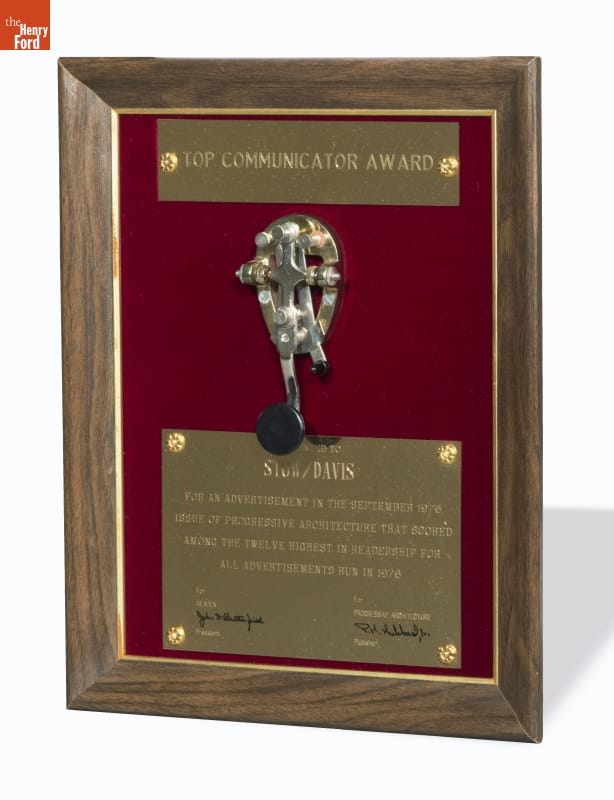 Award Presented by Progressive Architecture Magazine to Stow-Davis Furniture Company, 1977