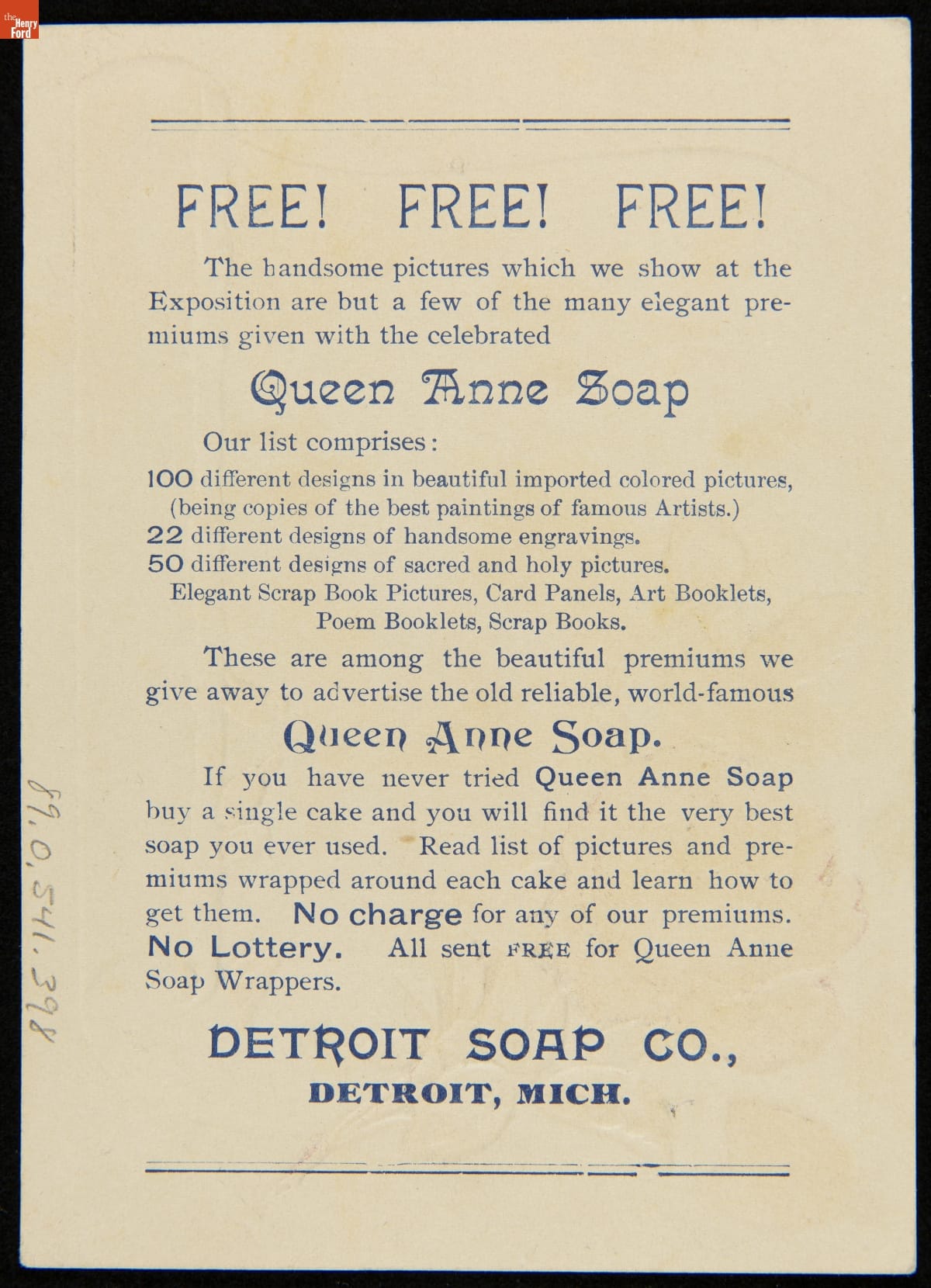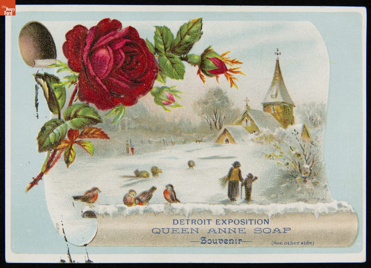 Trade Card for Queen Anne Soap, Detroit Soap Company, Detroit Exposition Souvenir, 1889