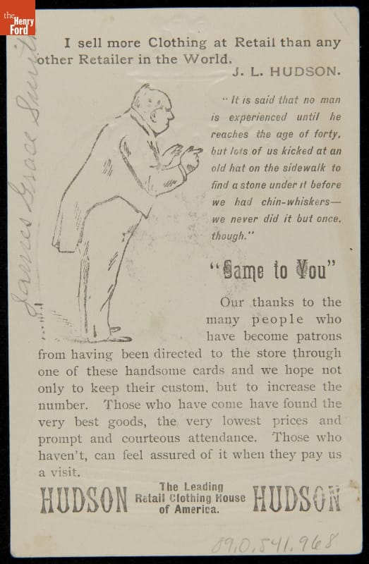 Trade Card for J.L. Hudson Company, 1881-1890
