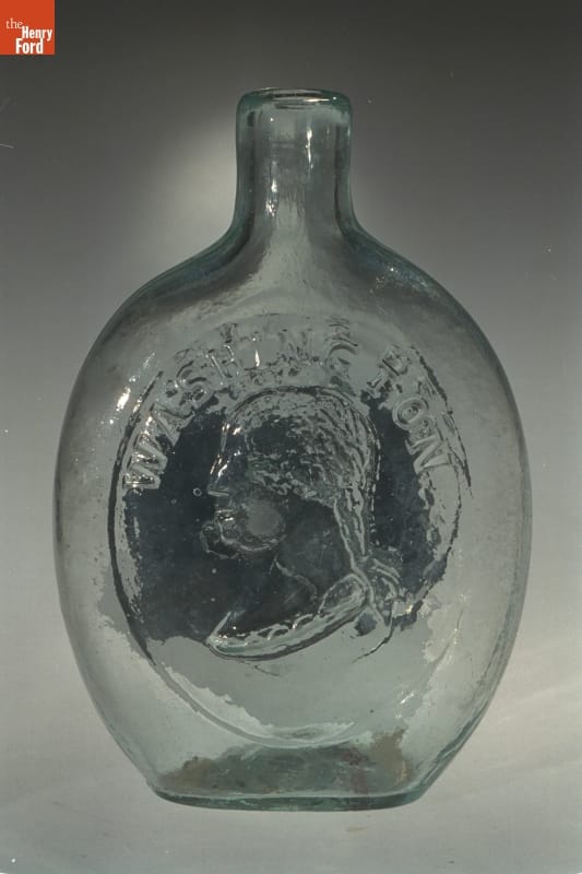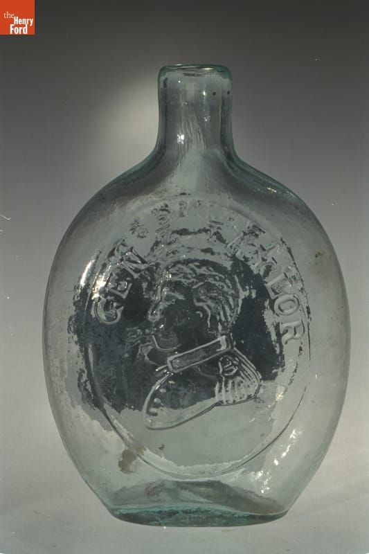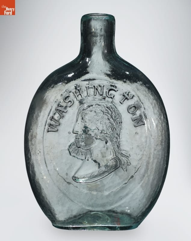 Whether depicted as commander-in-chief, the first president of the United States, or a symbol of the republic, George Washington is a common likeness on early American flasks. Washington appears on 72 recorded flask designs--more than any other person. This example depicts Washington as a classical statesman with major general Zachary Taylor, who became the 12th United States president in 1849.