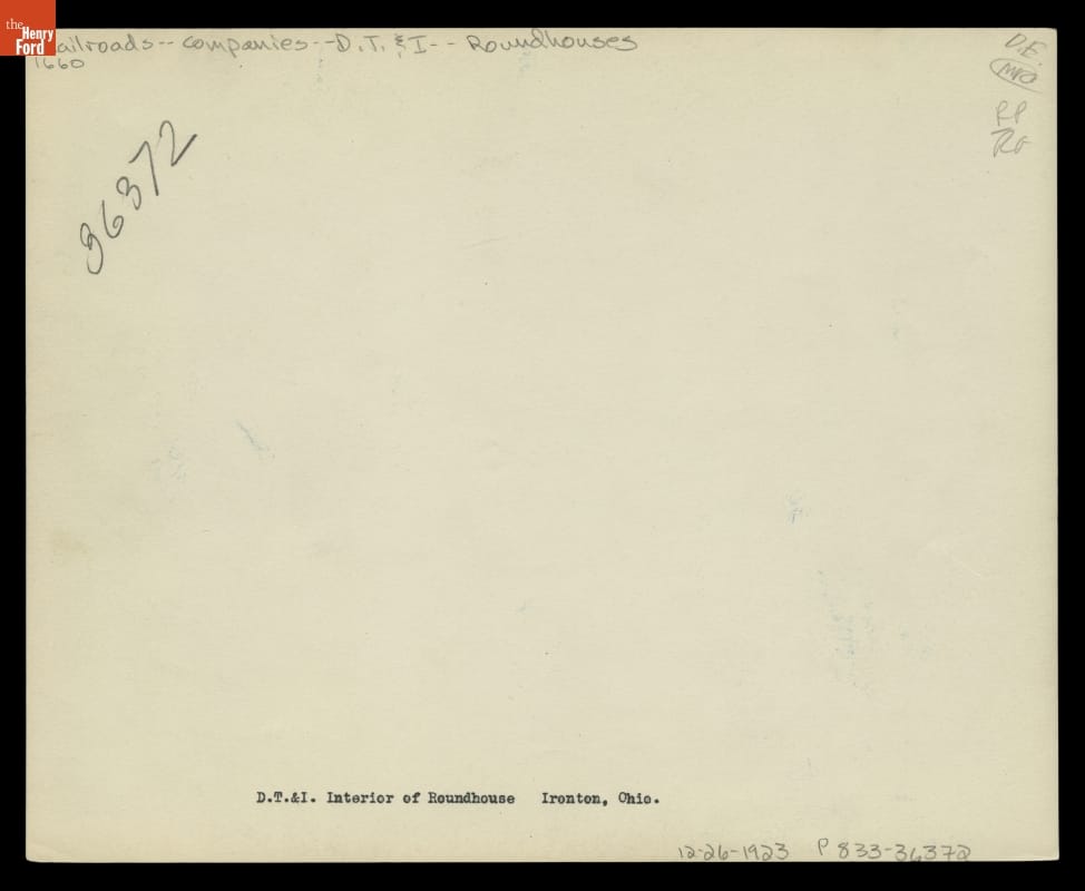 Detroit, Toledo & Ironton Railroad Roundhouse Interior, Ironton, Ohio, 1923