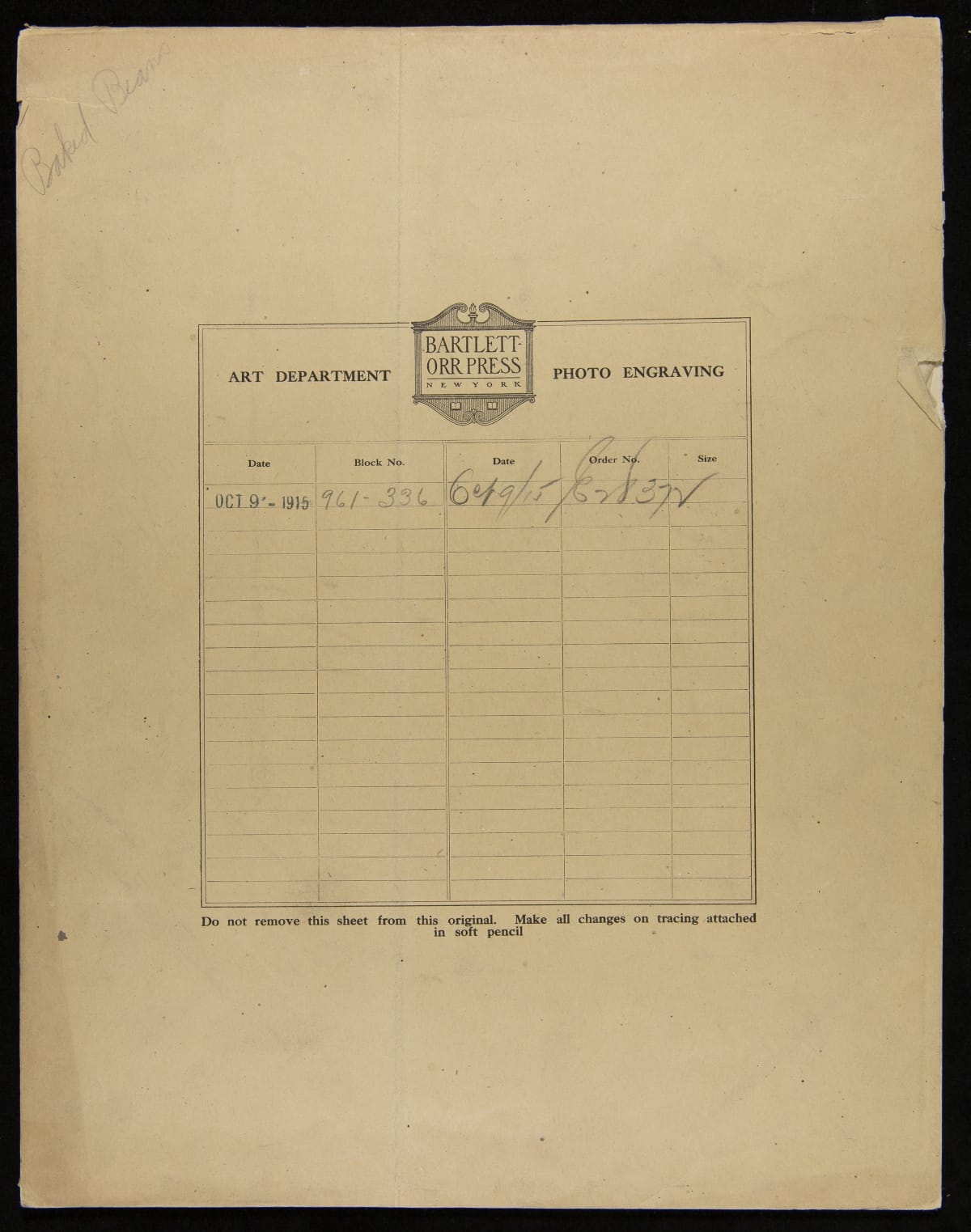 Advertising Illustration Layout for Heinz Baked Beans, October 9, 1915