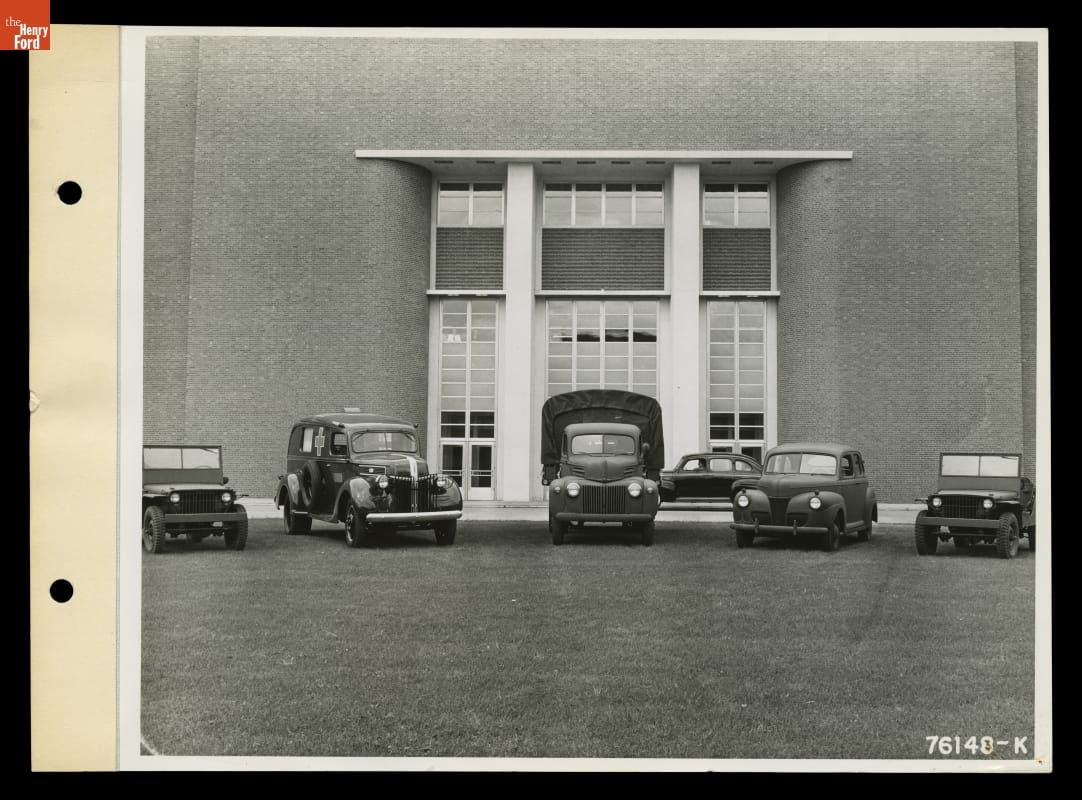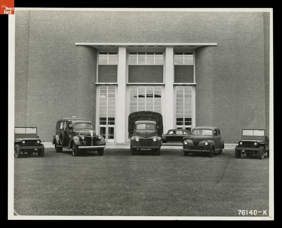 Ford Motor Company did not produce civilian vehicles from 1942 to 1945, instead turning its resources to the production of military vehicles and other war materiel. Jeeps, ambulances, trucks, and automobiles were all built for Allied forces -- along with bomber airplanes, gliders, tanks, and other items. The automotive industry provided one fifth of American manufacturing output during World War II.