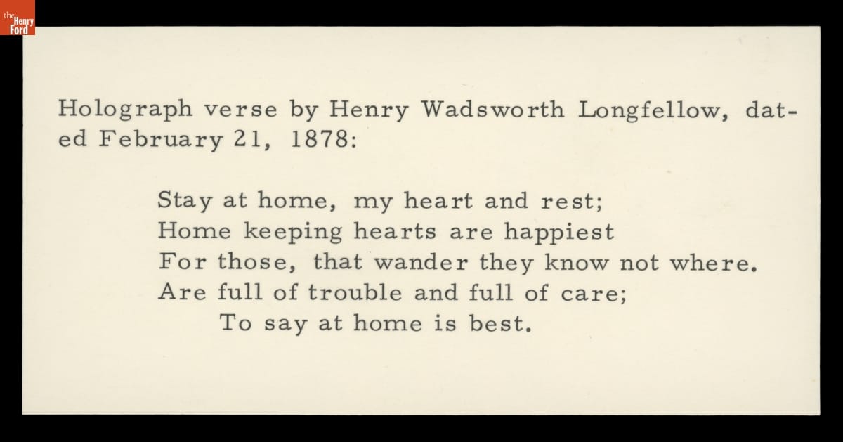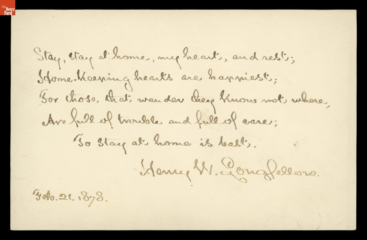 Henry Wadsworth Longfellow Manuscript, "Stay at Home," 1878
