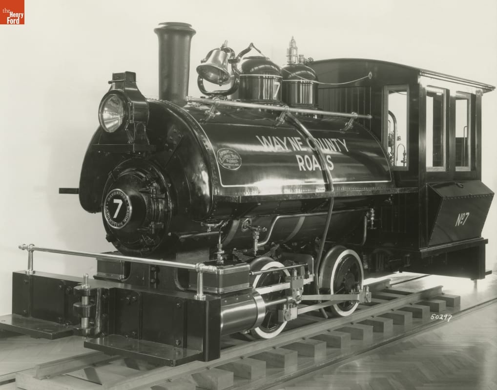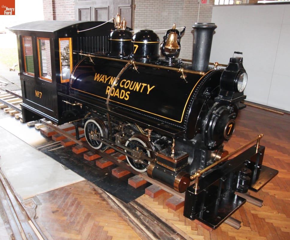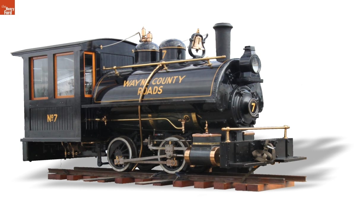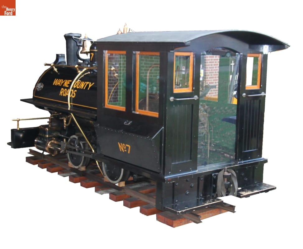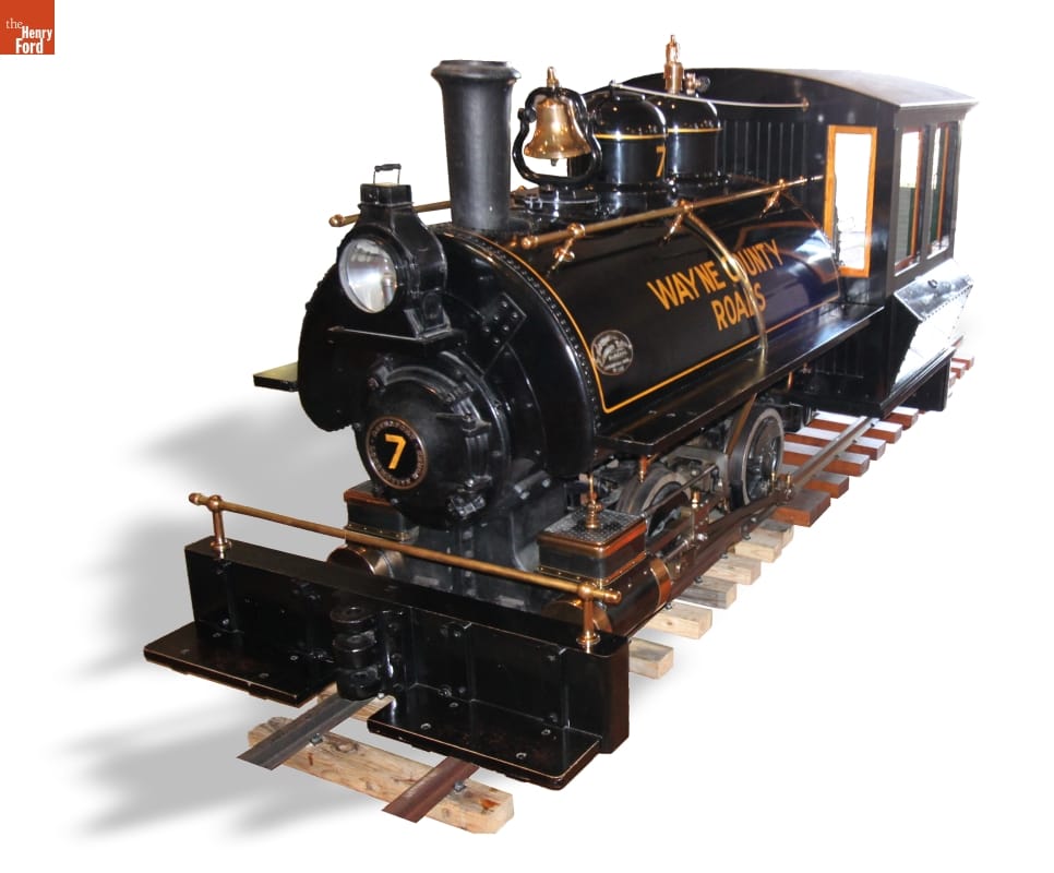 This locomotive was built for industrial switching service. Its gauge -- the width between its wheels -- is just two feet rather than the standard four feet, eight and one-half inches. Instead of using a conventional separate tender, the locomotive carried water in a tank set atop its boiler and coal in a bin on the left side of its cab.