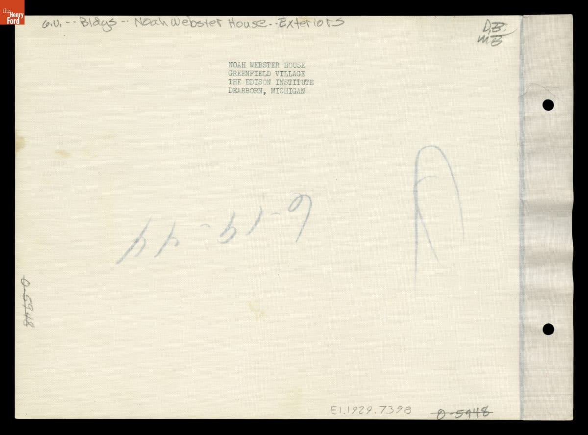 Henry Ford admired textbook pioneer and spelling reformer Noah Webster. Ford purchased Webster's New Haven, Connecticut, home and moved it to Greenfield Village in 1936 to join a growing list of historic buildings in Ford's outdoor museum in Dearborn, Michigan. This image shows the house in 1944.