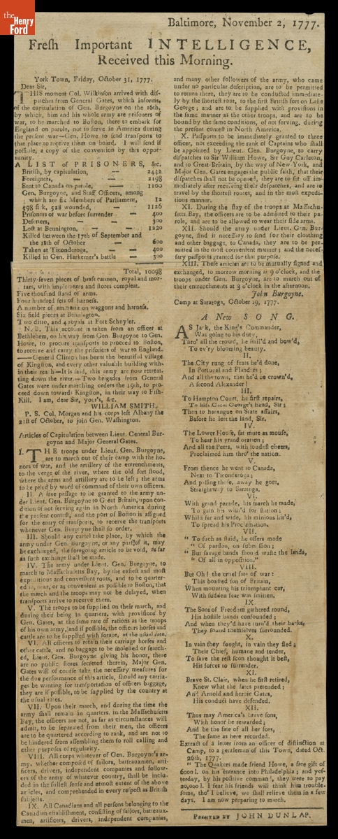 "Fresh Important Intelligence, Received this Morning," Baltimore, November 2, 1777