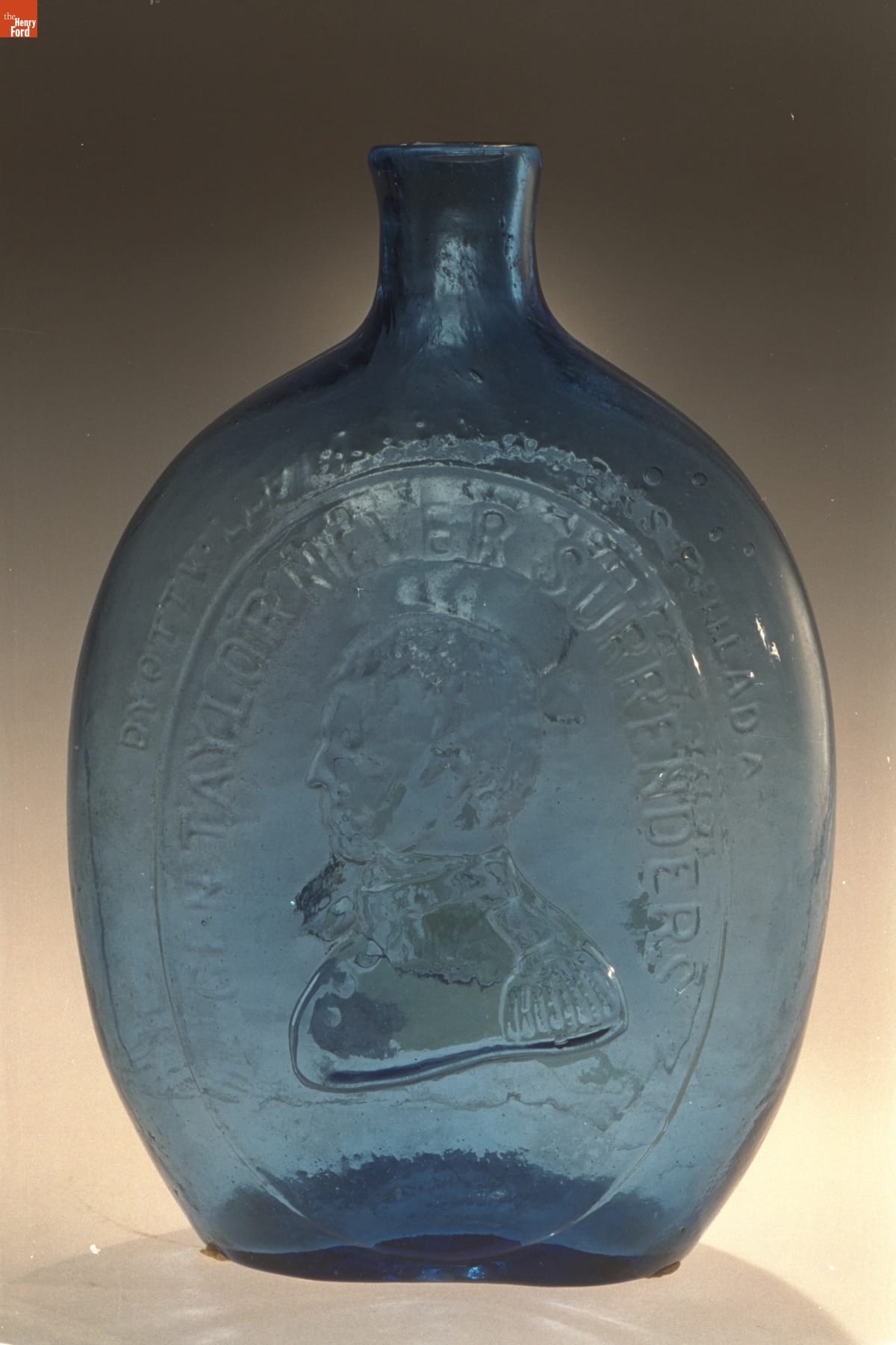 Whether depicted as commander-in-chief, the first president of the United States, or a symbol of the republic, George Washington is a common likeness on early American flasks. Washington appears on 72 recorded flask designs--more than any other person. This example depicts Washington as a classical statesman with major general Zachary Taylor, who became the 12th United States president in 1849.
