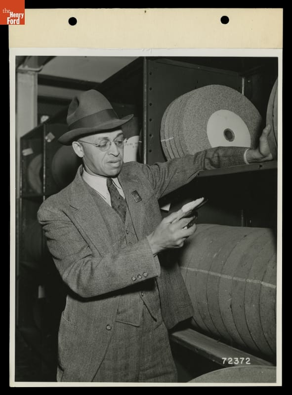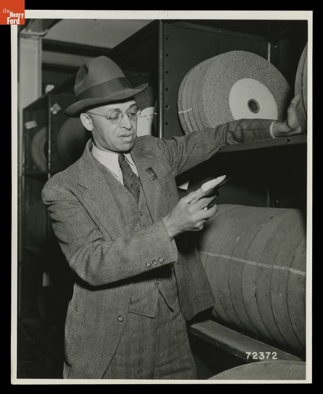 James Price Inspecting Emery Wheels at the Motor Building, Ford Rouge Plant, September 1939