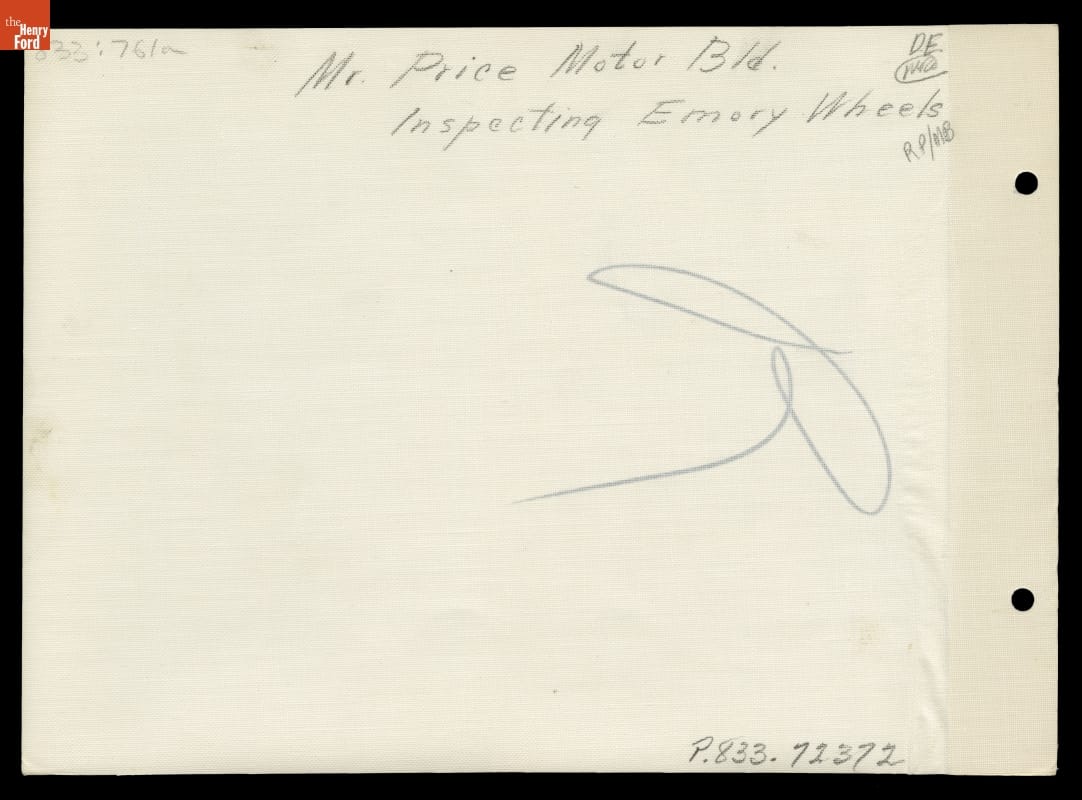 Mr. Price Motor Bld. / Inspecting Emory [sic] Wheels