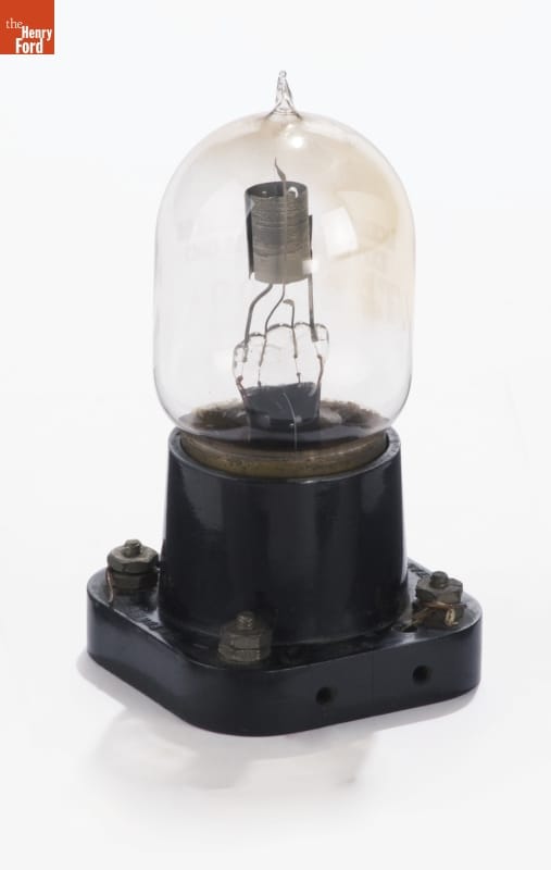 Vacuum tubes appear in older radios, televisions, amplifiers, computers, and other electronic devices. Their function: to amplify and strengthen weak electronic signals. Typical tubes are sealed glass bulbs evacuated of gas, allowing electron flow to be influenced by an interior cathode, plate and grid. Perfected in 1906 by Lee De Forest, the vacuum tube was the genesis of a communications revolution.