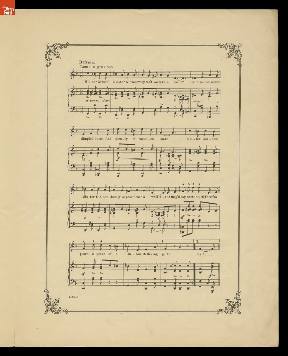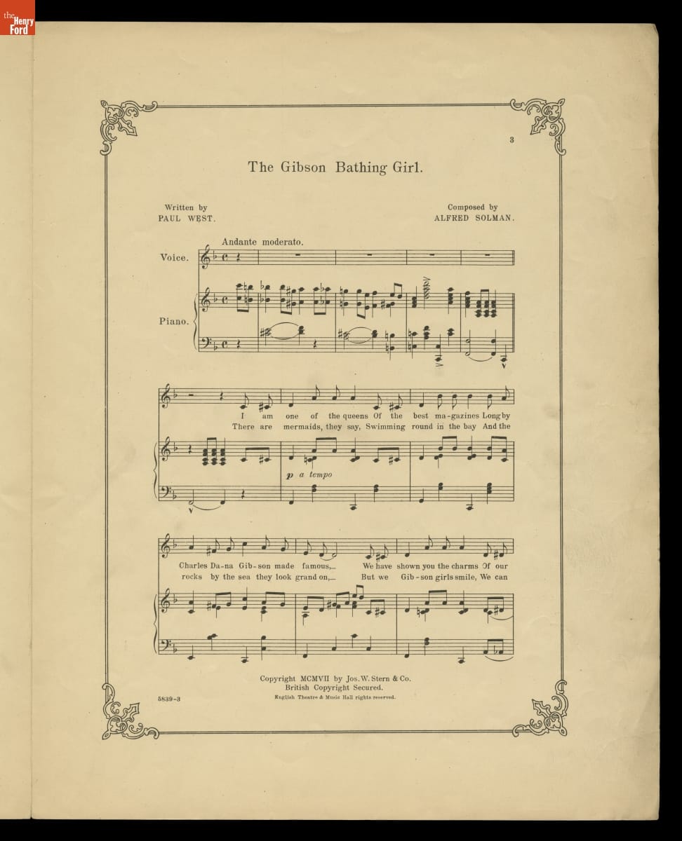 Charles Dana Gibson's illustrations of beautiful, independent young women reflected and helped define a new ideal of American femininity in the 1890s and early 1900s. These popular images, known collectively as "the Gibson Girl," became a cultural phenomenon referenced in fashion and entertainment. A powerful marketing tool, the widely imitated Gibson Girl proliferated in advertisements and on product packaging.
