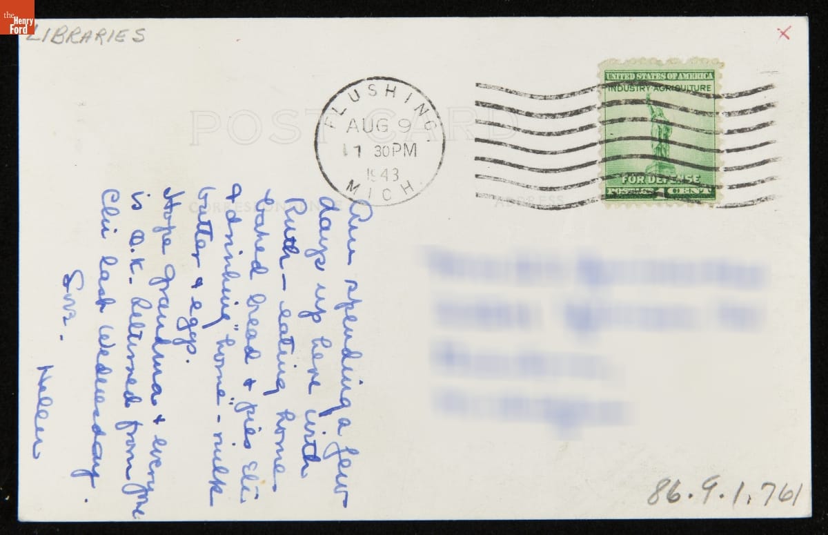 Postcard, "Flushing Library and Community Building, Flushing, MI," circa 1943