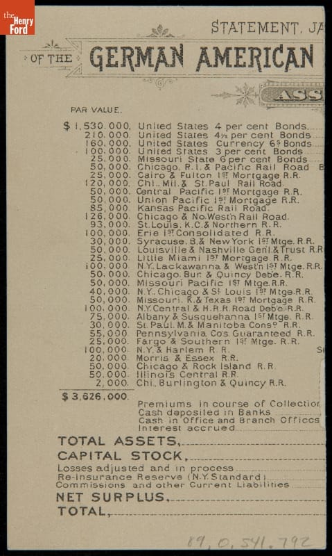 Trade Card for German American Insurance Co. of New York, 1872-1900