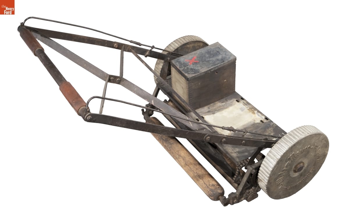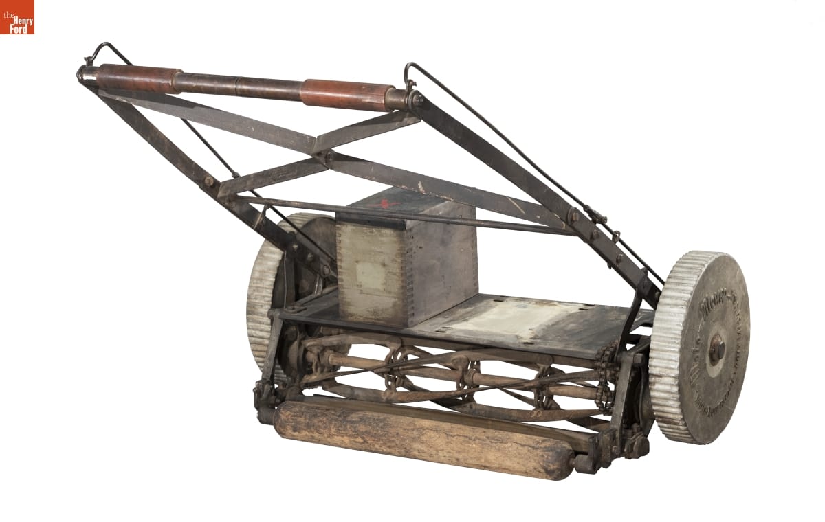Lawns require regular maintenance. First patented in the United States in 1868, cylinder- or reel-type mowers became an enduring, affordable option for anyone with a small lawn. The basic form consisted of blades that rotated around a horizontal axis, cutting the grass as the user pushed the machine. This "Moto-Mower" represents an early attempt to motorize the technology.