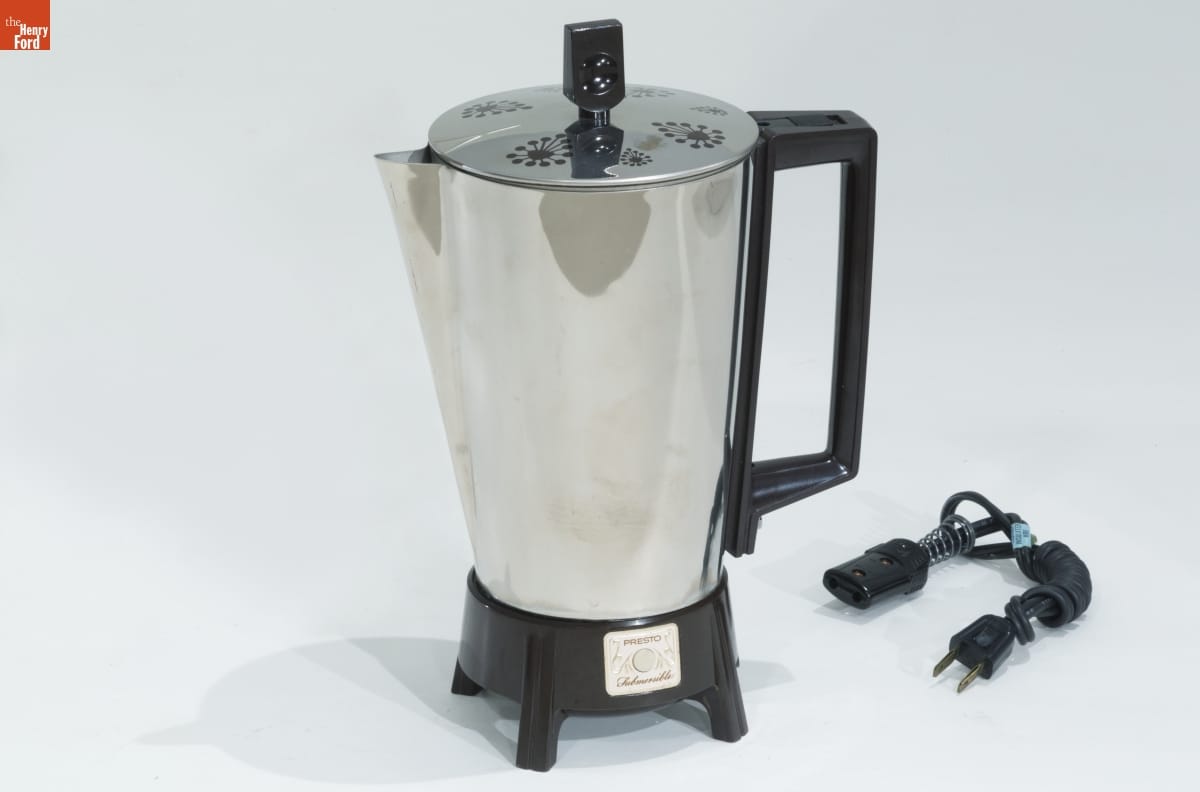 Electric appliance manufacturer National Presto Industries, Inc., became known for innovative products that anticipated and responded to evolving consumer needs. Presto introduced the first automatic stainless steel coffee maker that was fully submersible--designed to be washed safely, completely under water--in 1958. In the 1960s and 1970s, distinctive styling by Mel Boldt and Associates helped set Presto's coffee makers apart from the competition.