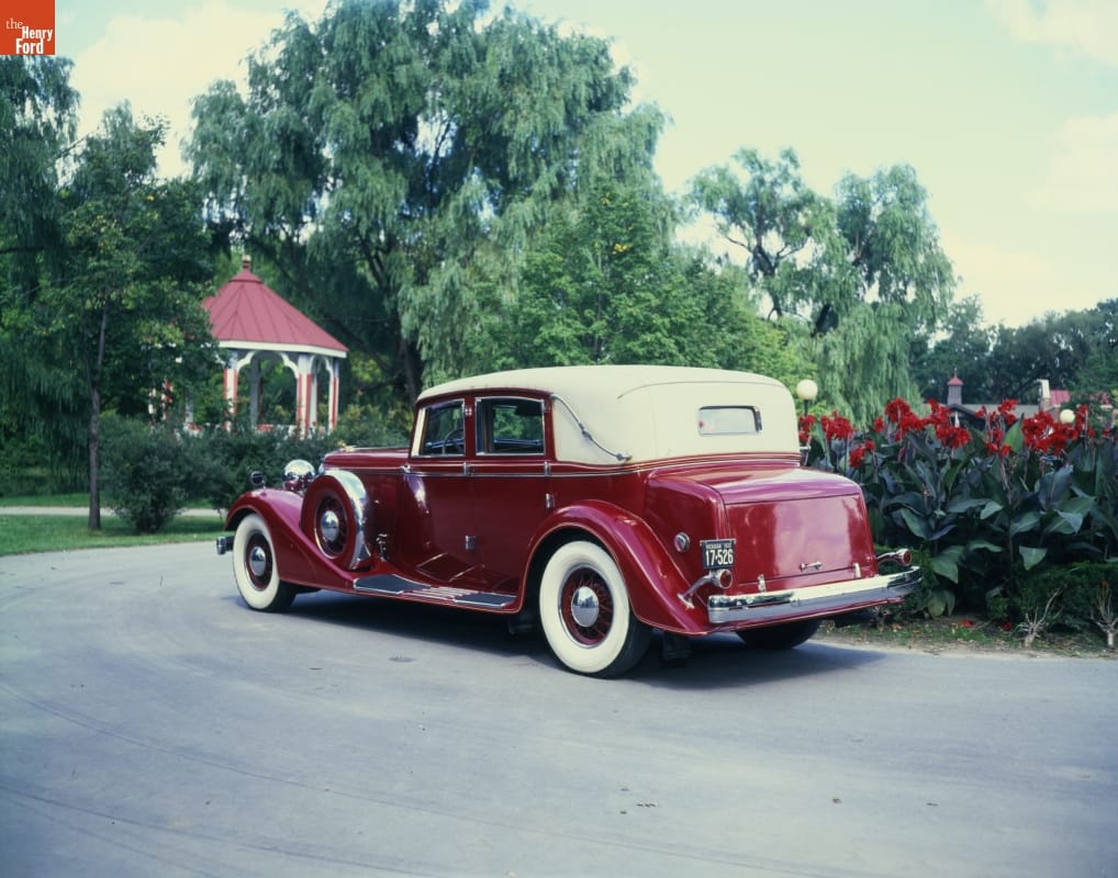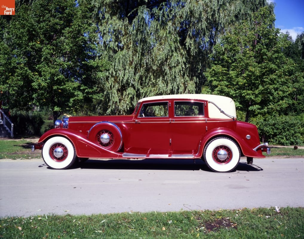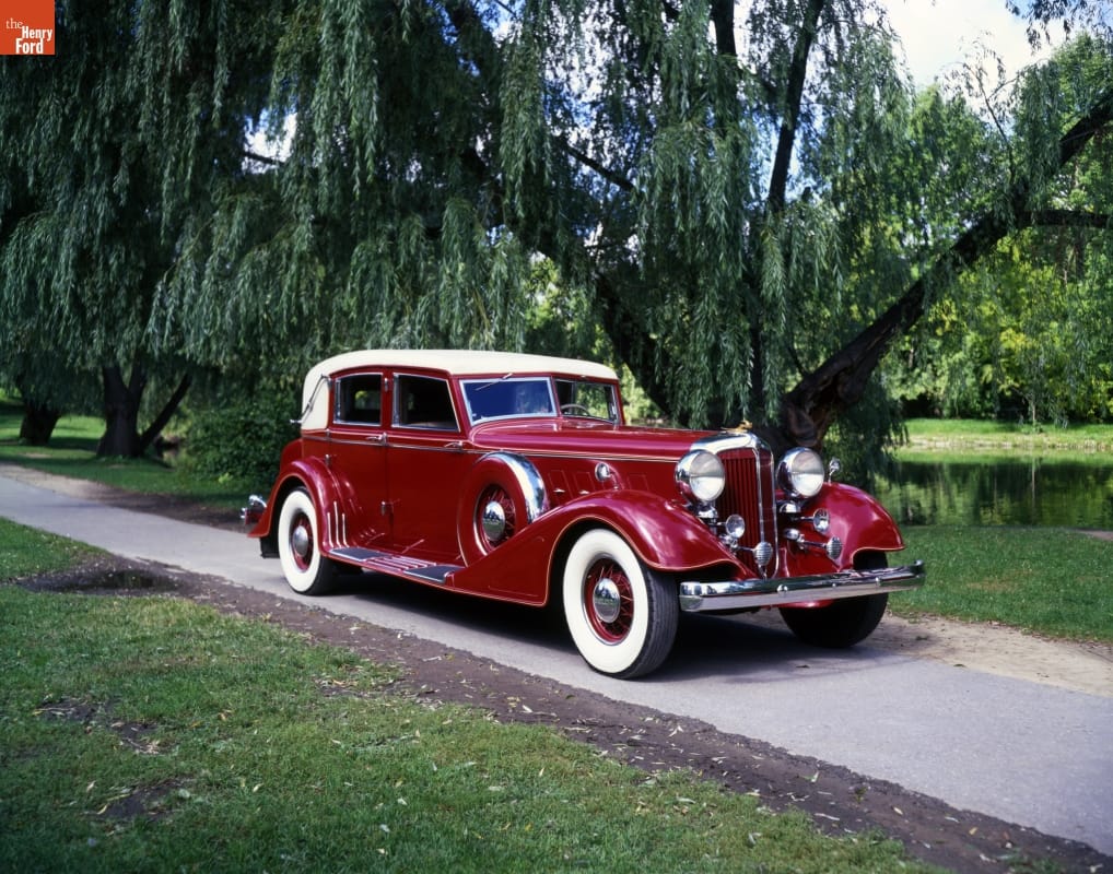 This Chrysler Imperial Landau was custom built for an especially prominent customer: company founder and president Walter P. Chrysler. The car features an aluminum body and a high-compression, eight-cylinder engine. The interior is fitted with a writing desk, bar, vanity case, and second speedometer viewable from the rear seat. The red color matched an antique Chinese vase owned by Mr. Chrysler.