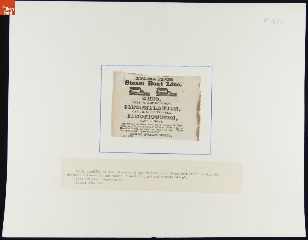 "Hudson River Steam Boat Line," July 1832