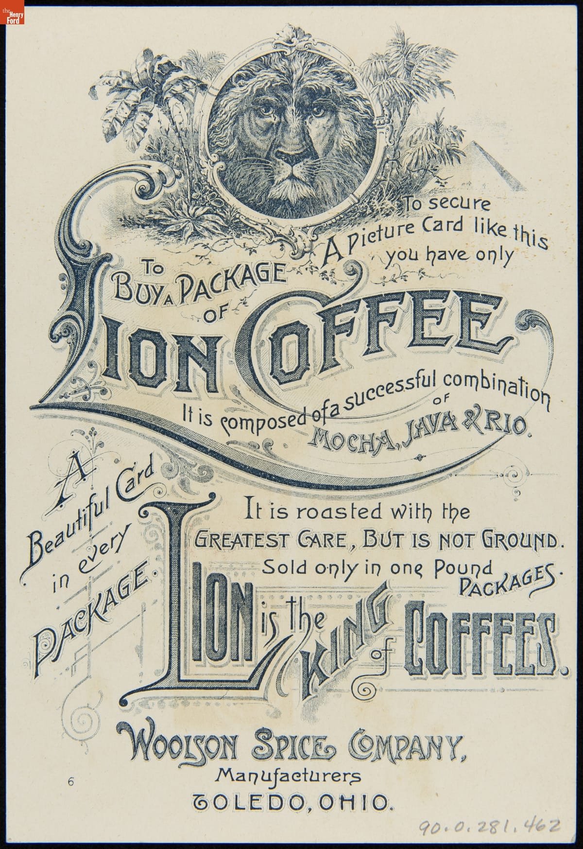 Trade Card for Lion Coffee, Woolson Spice Co., 1882-1900