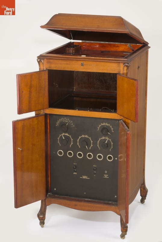 Radio receiver manufactured by Wireless Specialty for Radio Corporation of America, headquartered in New York City, in a phonograph cabinet built by Victor Talking Machine Company, Camden, New Jersey.