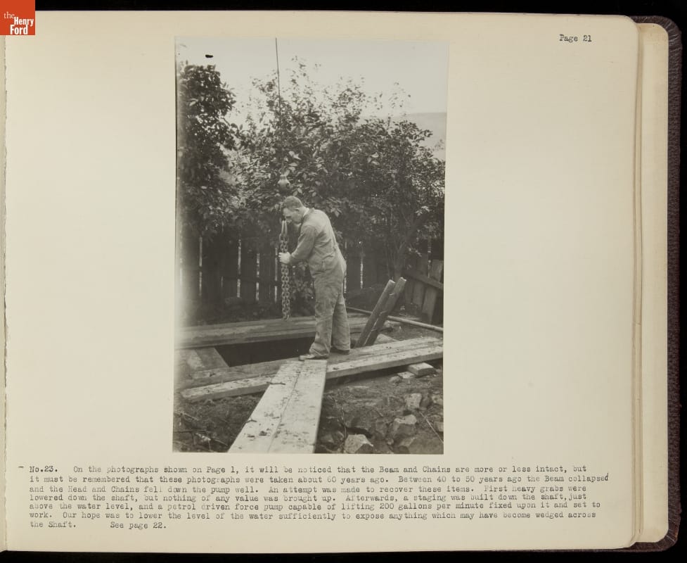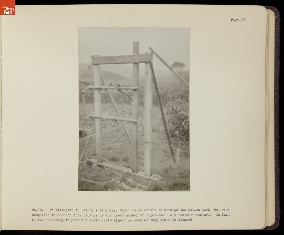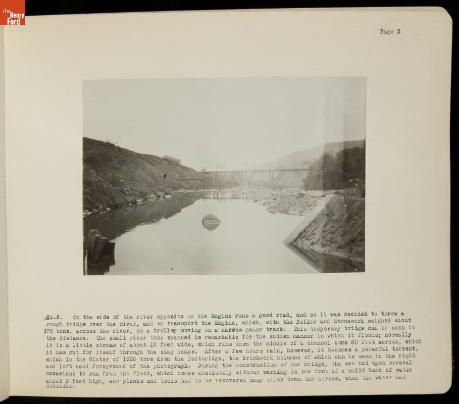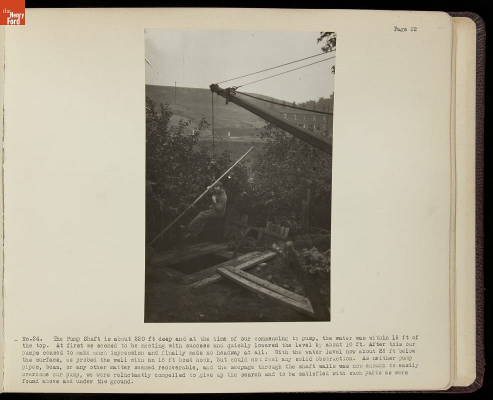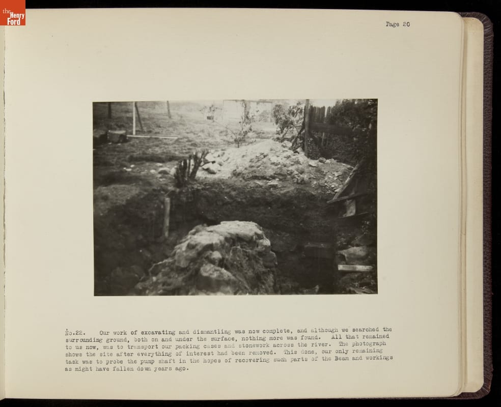 Henry Ford acquired the oldest known surviving steam engine in 1929. The engine, known locally as Fairbottom Bobs, lay in ruin near Ashton-under-Lyne, England. Ford charged Herbert Morton to dismantle, crate, and transport what remained of the original engine to Dearborn, Michigan. This album chronicles Morton's experience, which included an archeological dig, building a bridge, and laying a short railroad.