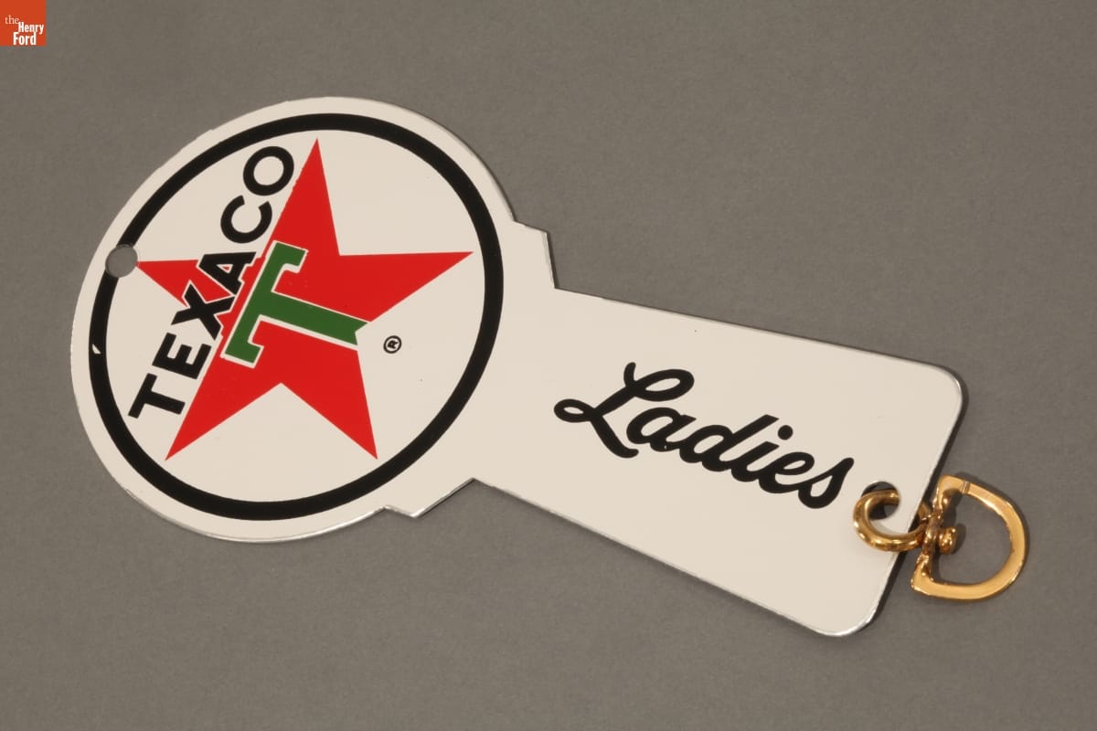 Restrooms were a powerful incentive to get motorists off the road and into a gas station. Retailers made a point of maintaining clean, comfortable facilities. Restrooms were kept locked, and customers requested keys from the attendant to access them. This system ensured patrons' safety and helped keep the rooms tidy.