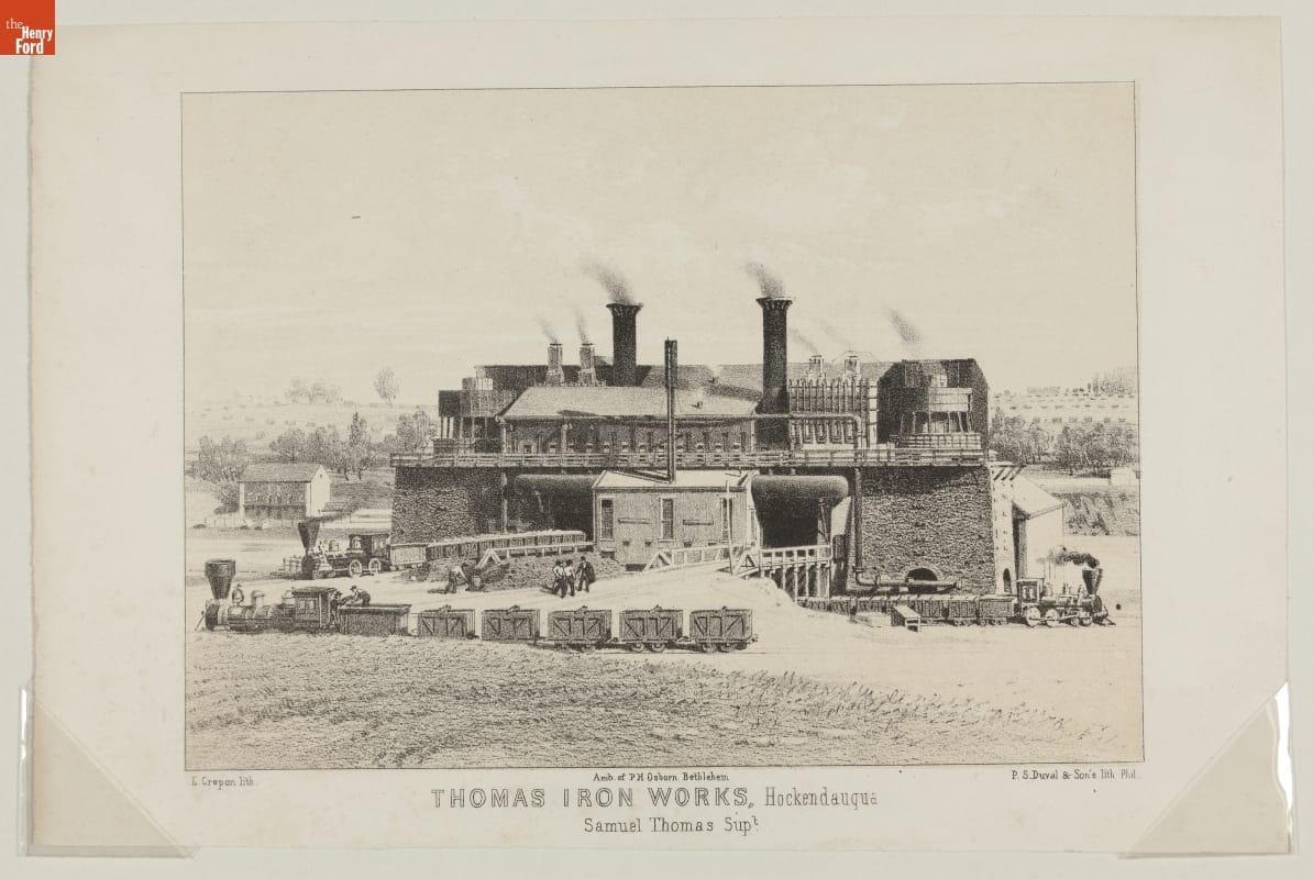 Lithograph, "Thomas Iron Works, Hockendauqua," circa 1860