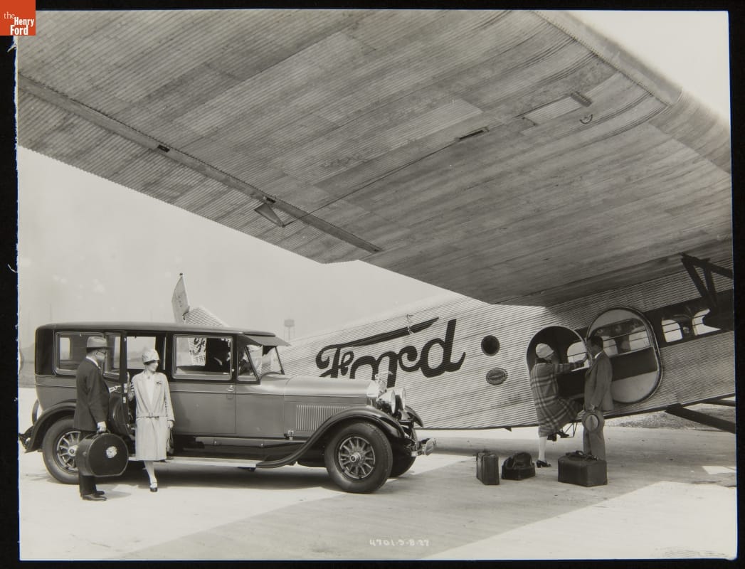 Passenger air travel was a completely new -- and perhaps fearsome -- concept for most Americans in the 1920s. Images like this, used in national advertisements for the Ford Tri-Motor, helped convince a skeptical public of the safety of flying in a Ford plane. These educational advertisements offered an exciting and reassuring description of the flying experience, emphasizing "well-designed, well-constructed machines handled by competent pilots."