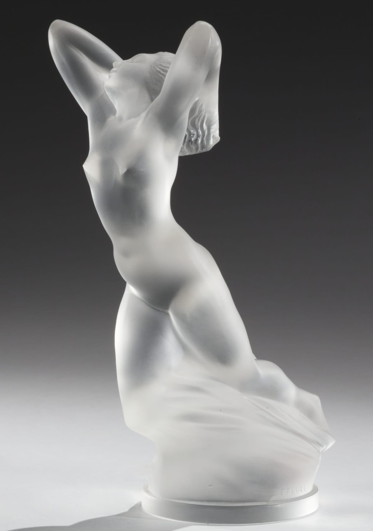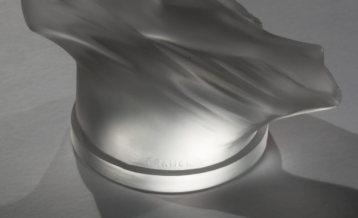 Rene Lalique created some of the most striking automobile mascots or hood ornaments. Lalique's elegant, molded-glass models enhanced the front of any luxury vehicle. The mascots could also be lit from below making them all the more impressive. These decorative mascots became a symbol of the car owner's wealth, status, and good taste.