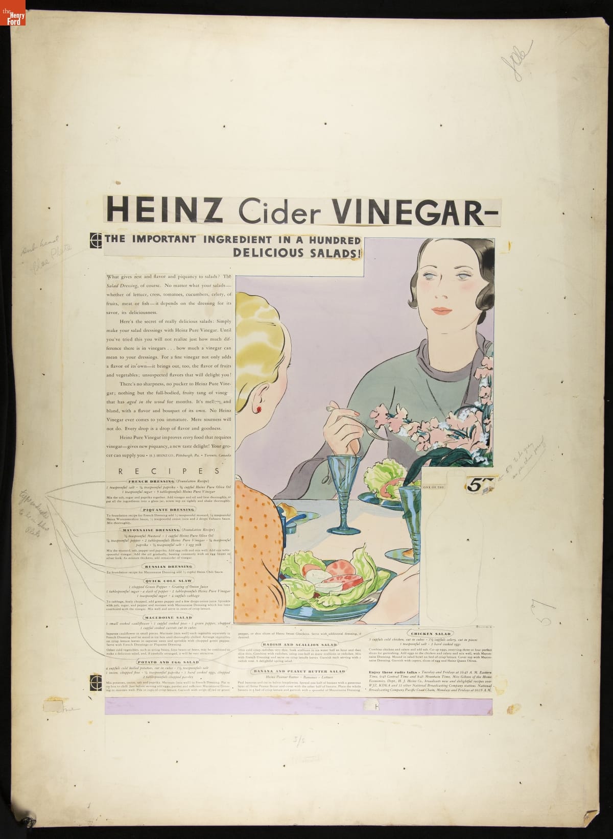 The H.J. Heinz Company marketed its products everywhere from stores to various publications and even on streetcars. This advertising layout represents one of the steps in the marketing process in which the drawing or illustration, size, color, and arrangement are taken into consideration before the final advertisement is created.