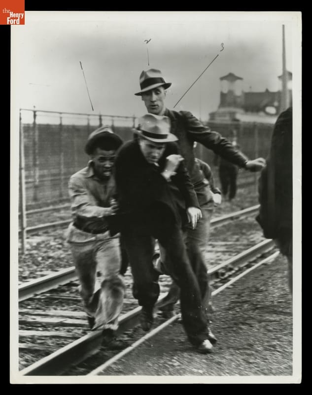 Ford Motor Company refused to recognize the United Auto Workers labor union and hired guards to resist unionization among Ford employees. In May 1937, men from Ford's Service Department attacked labor organizers on a pedestrian overpass at Ford's Rouge Plant, beating several men and women. This bloody "Battle of the Overpass" became a lasting symbol of the American labor struggle.