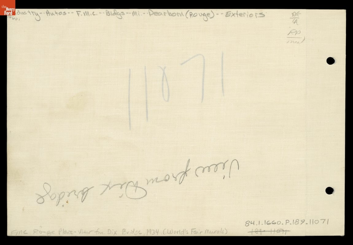 The Ford building at the 1933-1934 Chicago World's Fair was lined with murals depicting the River Rouge Plant -- a symbol of industrial efficiency that exemplified the fair's Century of Progress theme. One mural included this majestic view of the plant, which was the largest and most efficient manufacturing complex of its time.