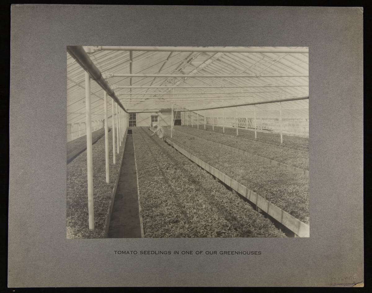 Tomato Seedlings in a Greenhouse, circa 1910