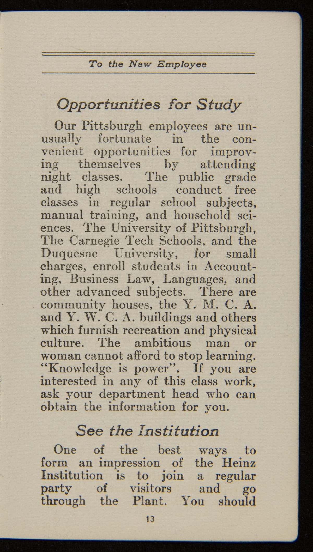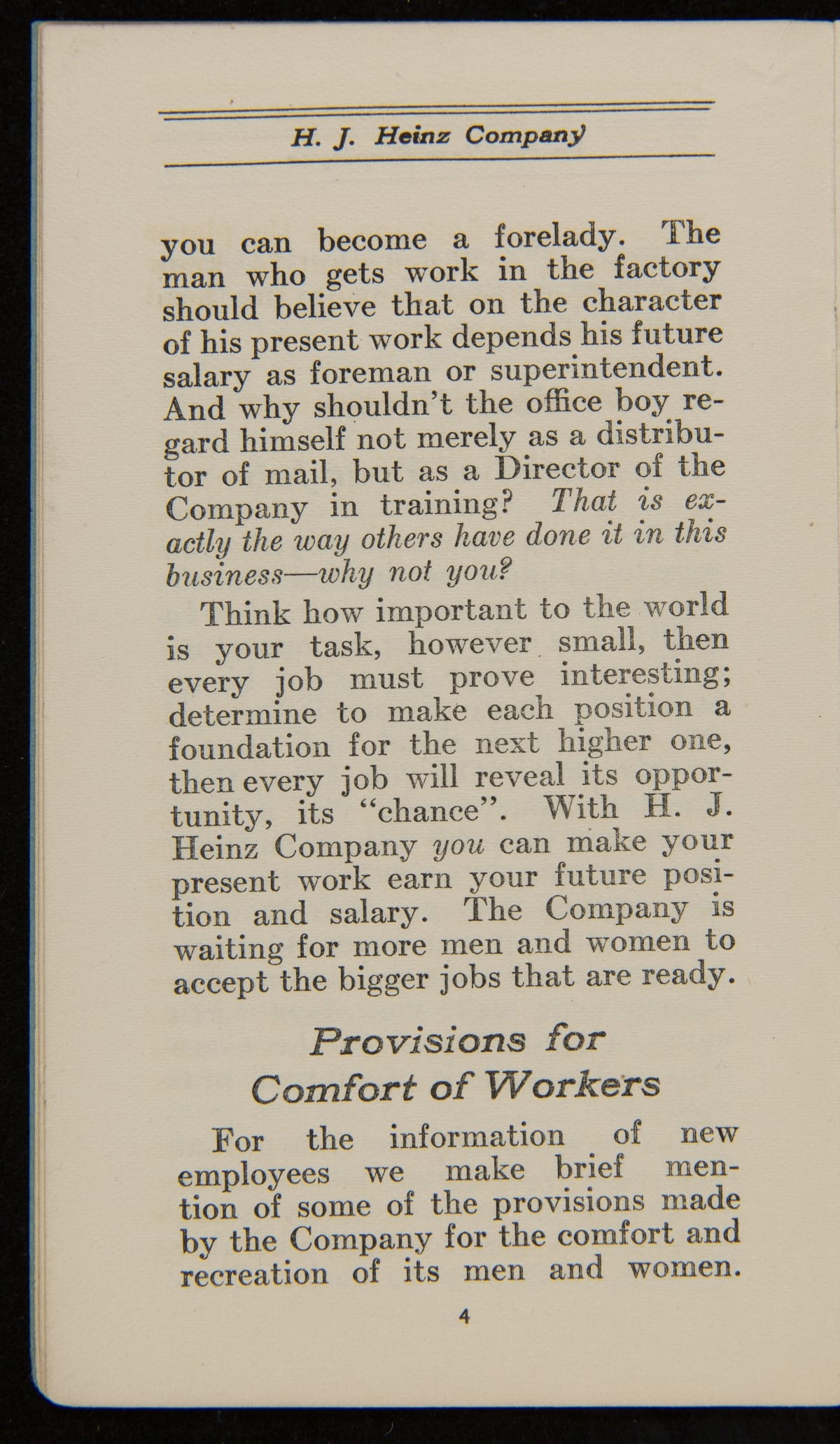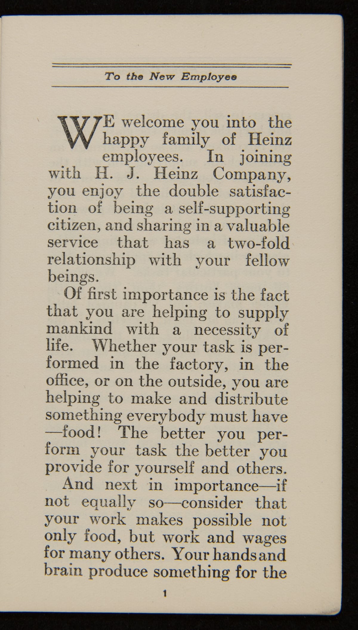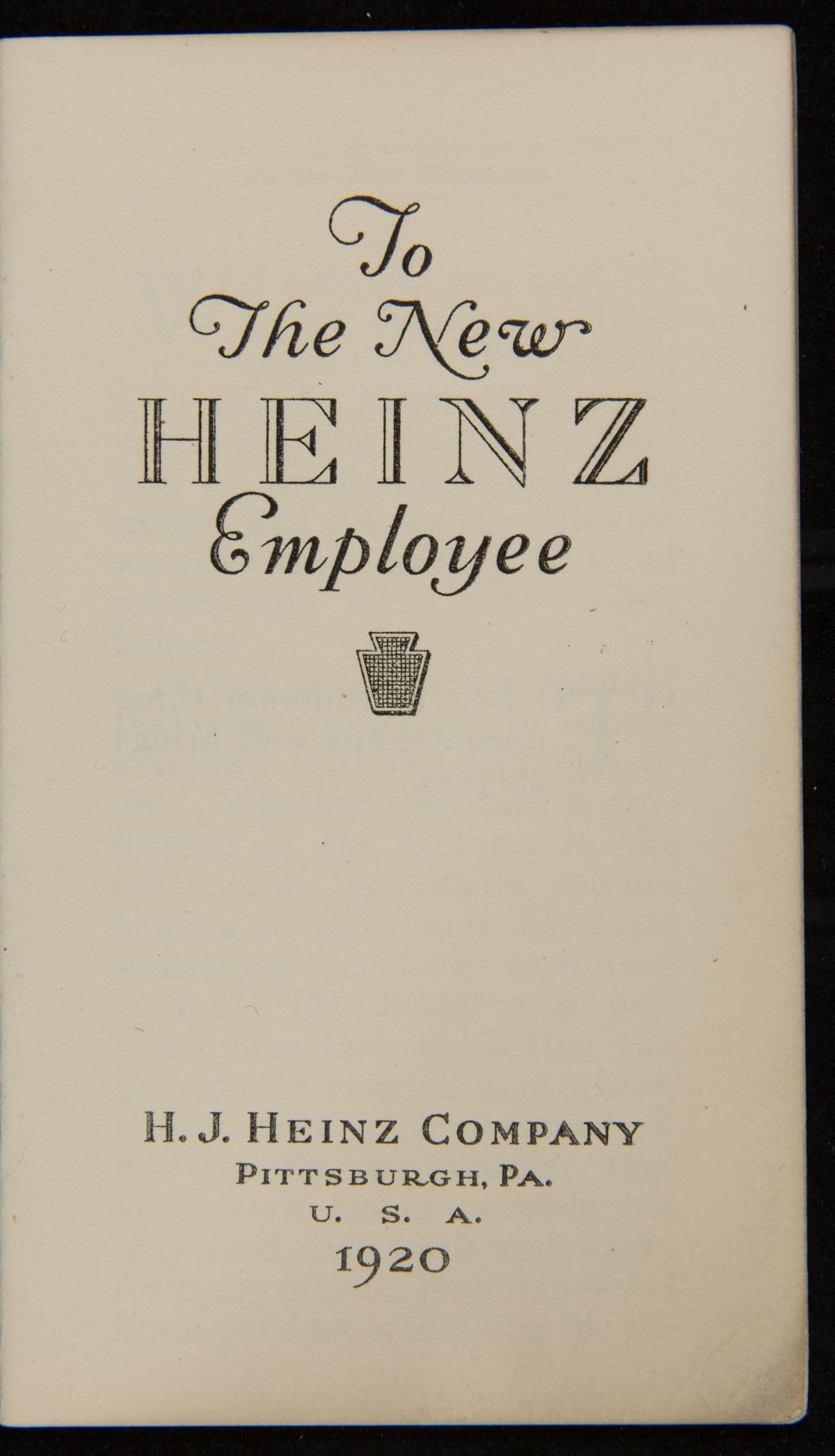H. J. Heinz Employee Handbook, "To The New Heinz Employee," 1920