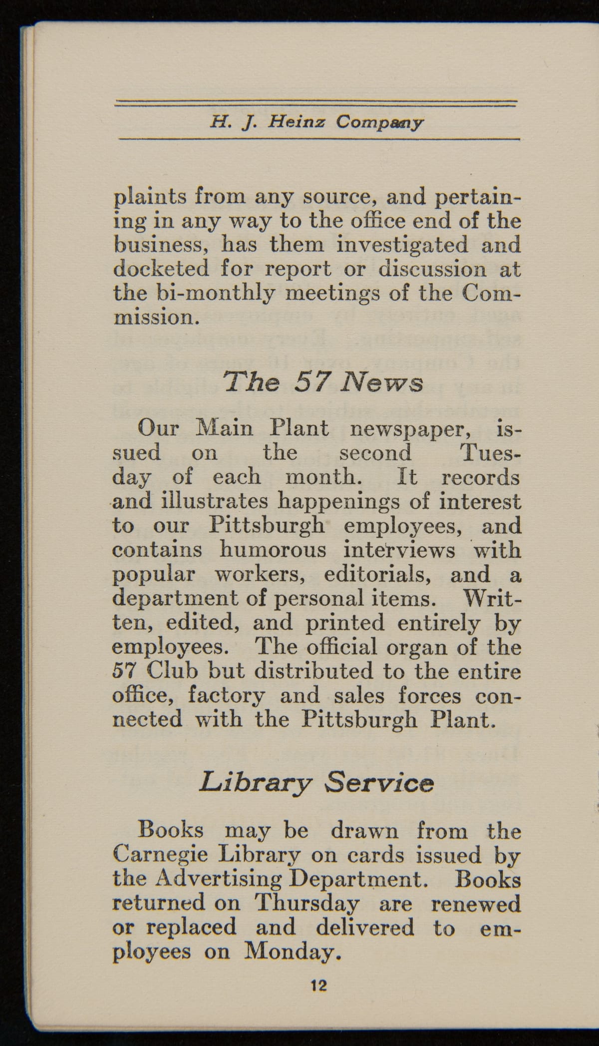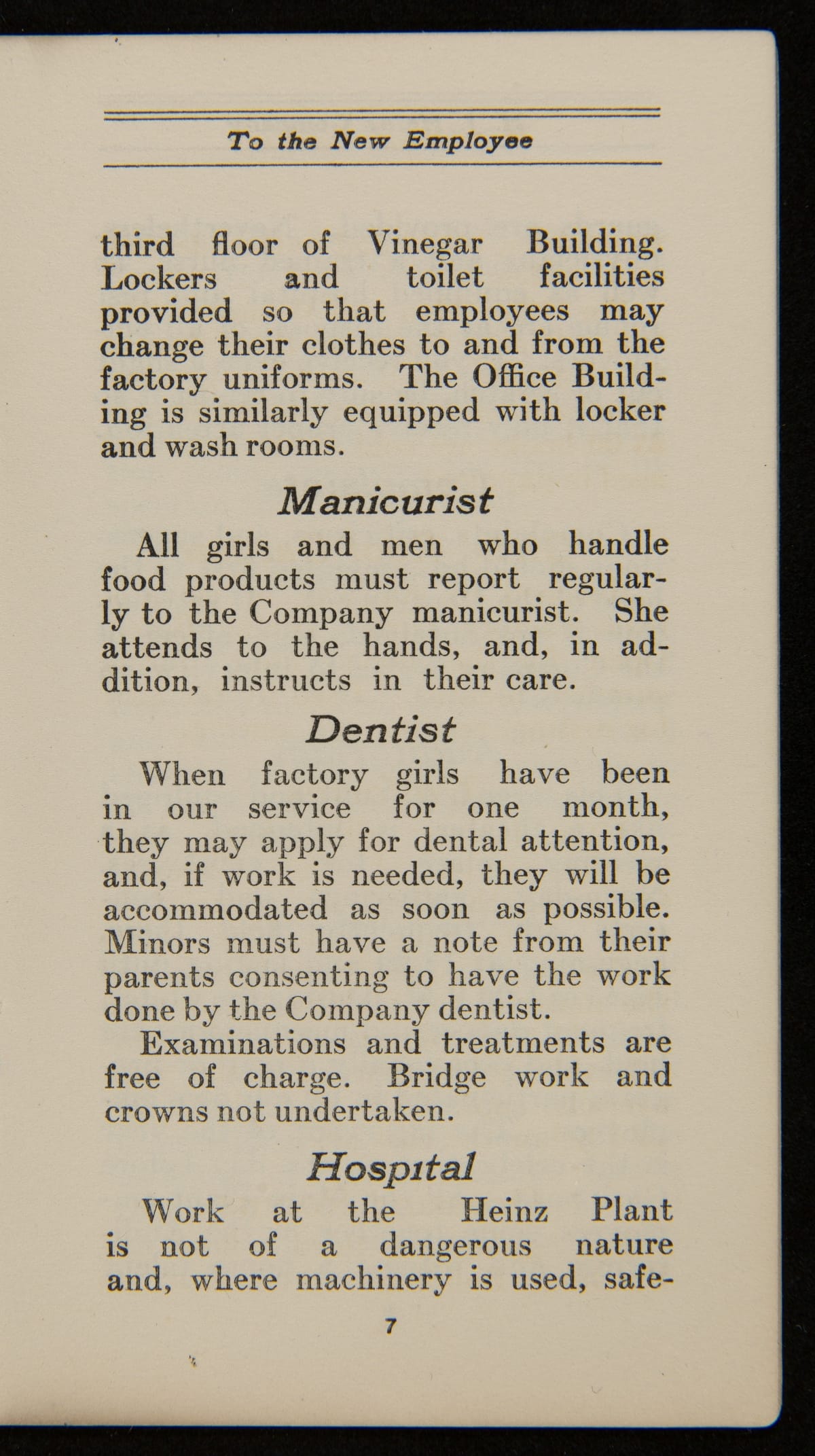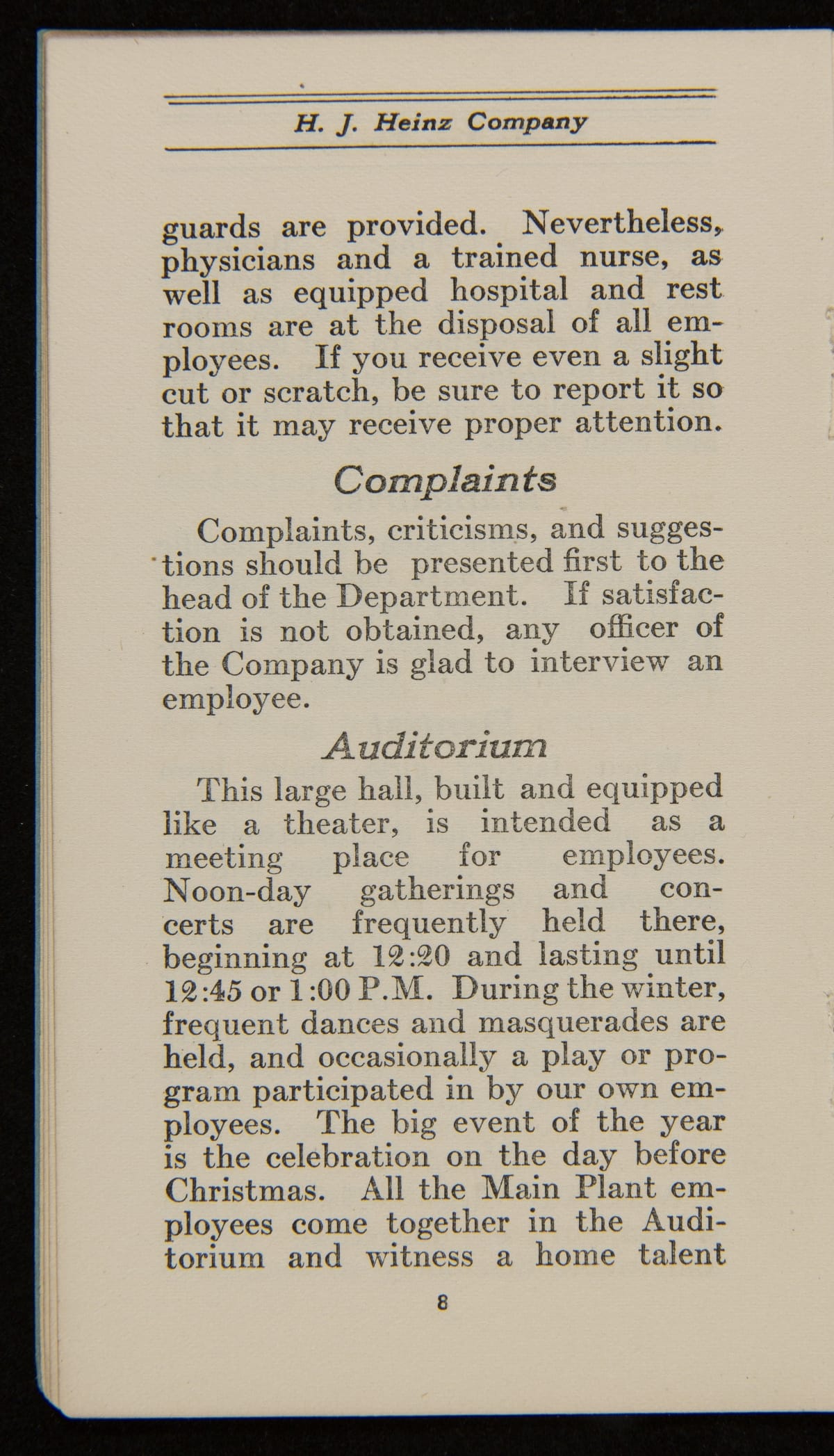 From its founding, a guiding principle of the H.J. Heinz Company was to promote strong company relationships with its employees. This resulted in a world-class employee welfare program which included amenities, programs, and policies with consideration for their well-being. This employee handbook from 1920 explains each of these provisions and encourages teamwork and a strong personal work ethic from the incoming employee.