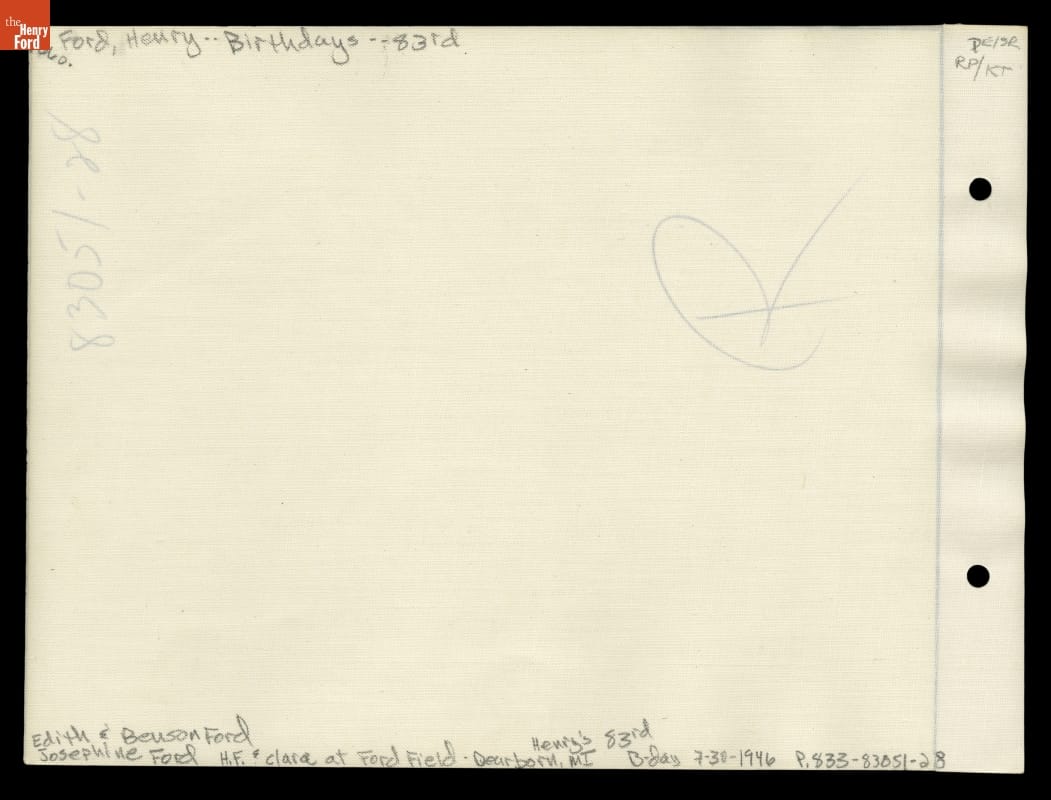 Henry Ford celebrated his 83rd birthday on July 30, 1946, surrounded by family, friends and admirers. The day was filled with a number of events honoring the automaker. In the evening, thousands of well-wishers joined Ford for a concert and fireworks display at Dearborn's Ford Field.