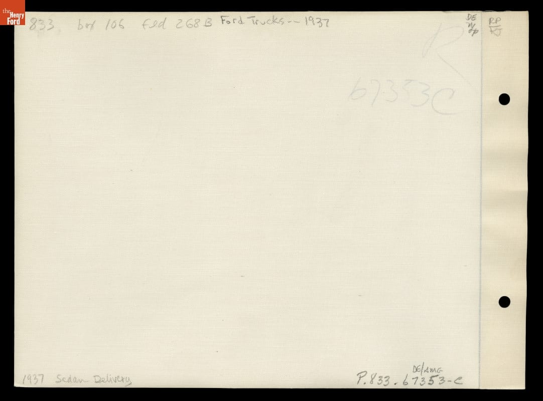 1937 Ford V-8 Sedan Delivery Truck for Vernor's Ginger Ale, November 30, 1936